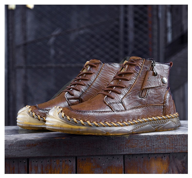 The Vibram-inspired outsole features multi-directional lugs that bite into wet pavement and loose terrain. We've kept the profile lean so you get work-boot traction without the clunky feel - perfect for guys who value both function and style.