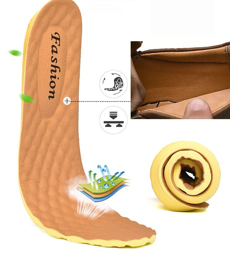 Made from premium leather and high-performance Hi-Poly materials, these insoles combine breathability with superior cushioning. They contour to your feet for personalized comfort and all-day support—reducing fatigue with every step. Walk farther. Feel better. Your feet deserve it.